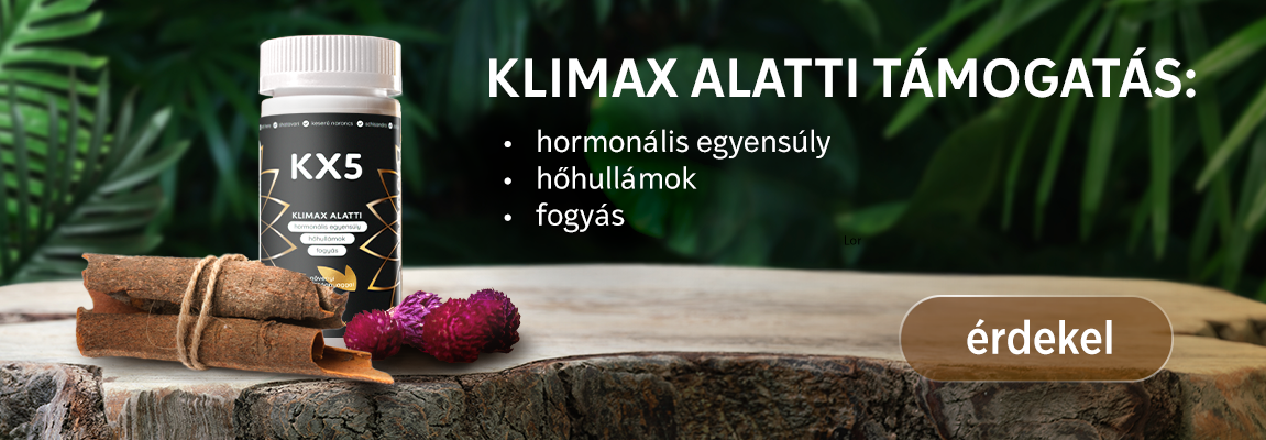 A KX5 kapszula 5 növényi kivonattal és krómmal segíti a klimax alatti panaszok enyhítését, a hőhullámoktól kezdve a súlycsökkentésig.