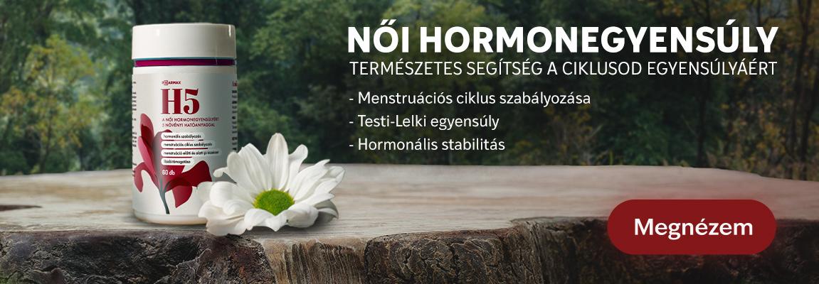 A H5 kapszula egy speciálisan nők számára kifejlesztett étrend-kiegészítő, amely 5 válogatott növényi hatóanyagot és B6-vitamint tartalmaz a hormonális egyensúly, a menstruációs ciklus szabályozása és a libidó támogatása érdekében.